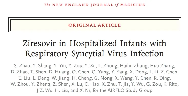 近日,華西二院劉瀚旻教授聯(lián)合多位專家在The New England Journal of Medicine上發(fā)表題目為Ziresovir in Hospitalized Infants with Respiratory Syncytial Virus Infection的研究成果。此研究是NEJM發(fā)表的首個中國自主研發(fā)的兒童創(chuàng)新藥臨床研究,也是全球首個治療RSV病毒感染靶向藥的III期臨床試驗結果。首都醫(yī)科大學附屬北京兒童醫(yī)院趙順英教授為文章第一作者,倪鑫教授(末位通訊)、華西二院劉瀚旻教授和愛科百發(fā)鄔征博士為共同通訊作者。