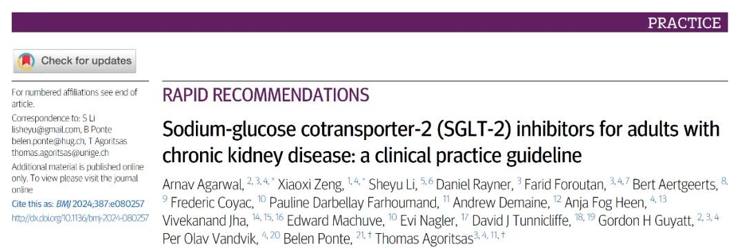 近日,四川大學華西醫(yī)院腎臟內科/生物醫(yī)學大數(shù)據研究院曾筱茜副教授、內分泌代謝科李舍予副教授,聯(lián)合9個國家的腎臟科、普通內科、內分泌科、全科醫(yī)學科等15名臨床醫(yī)生、循證醫(yī)學方法學家以及3名慢性腎病患者,共同制定的《鈉-葡萄糖共轉運蛋白2(SGLT2)抑制劑治療成人慢性腎臟病(CKD)臨床實踐指南》,在“臨床醫(yī)學四大刊”之一的BMJ發(fā)表。