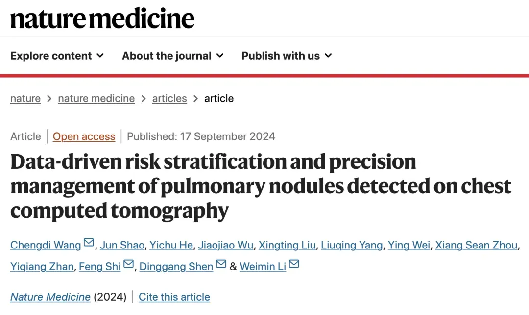 近日,四川大學華西醫(yī)院呼吸與危重癥醫(yī)學科李為民教授、王成弟研究員團隊在醫(yī)學頂級期刊Nature Medicine發(fā)表了最新研究成果“Data-driven risk stratification and precision management of pulmonary nodules detected on chest computed tomography”?;谥袊巳悍伟┖Y查隊列、肺結節(jié)臨床隊列,創(chuàng)新性研發(fā)基于數(shù)據驅動的中國肺結節(jié)報告和數(shù)據系統(tǒng)(Chinese Lung Nodules Reporting and Data System,C-Lung-RADS),實現(xiàn)了肺結節(jié)惡性風險精準分級和個性化管理。