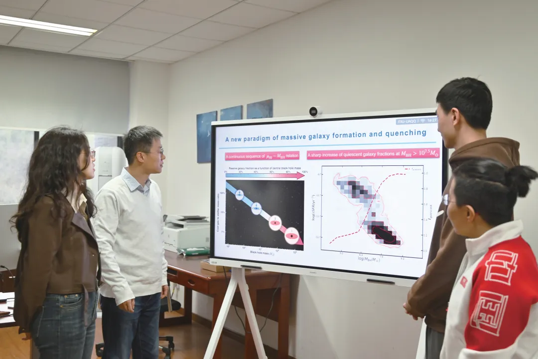 圖為南京大學(xué)天文與空間科學(xué)學(xué)院王濤教授(左二)帶領(lǐng)團(tuán)隊(duì)成員開(kāi)展研究
