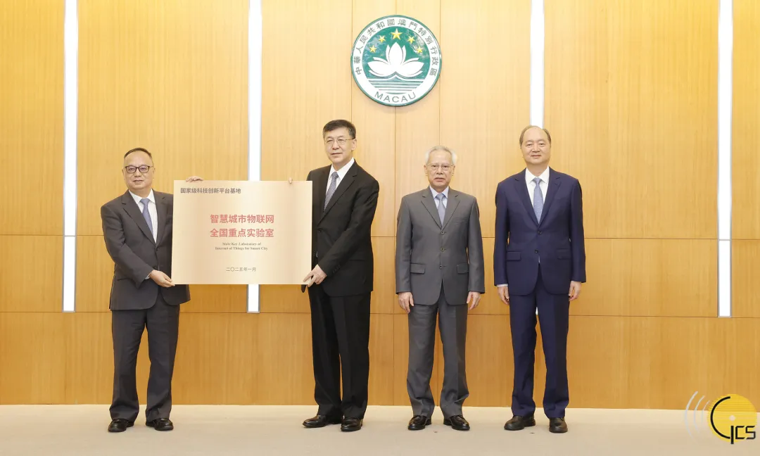 在行政長官岑浩輝見證下,國家科技部部長陰和俊頒授牌匾予澳門大學(xué)智慧城市物聯(lián)網(wǎng)全國重點實驗室。