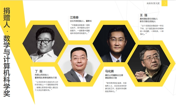 未來科學(xué)大獎每個獎項由4位捐贈人共同捐贈,均為關(guān)注中國科技事業(yè)的企業(yè)家、投資人等自愿出資。