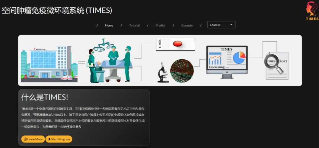“TIMES”評分系統(tǒng)全稱為“Tumor Immune MicroEnvironment Spatial”(腫瘤免疫微環(huán)境空間)評分系統(tǒng),是首個(gè)結(jié)合空間免疫信息的肝癌復(fù)發(fā)預(yù)測工具。研究證明了免疫細(xì)胞的空間分布比其整體數(shù)量更能決定臨床預(yù)后,將空間轉(zhuǎn)錄組學(xué)、蛋白質(zhì)組學(xué)和多光譜免疫組化技術(shù)與人工智能驅(qū)動(dòng)的空間分析整合,創(chuàng)造了腫瘤微環(huán)境評估的全新方法。