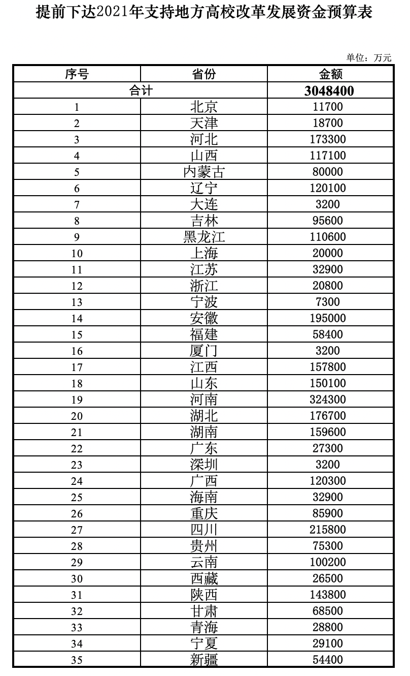 附件:提前下達(dá)2021年支持地方高校改革發(fā)展資金預(yù)算表